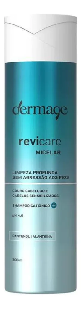 O shampoo micelar da Dermage é indicado para uma limpeza profunda para todos os tipos de cabelo, especialmente para os sensibilizados. A promessa desse produto é fazer uma limpeza profunda nos fios sem agredi-los ou ressecar.