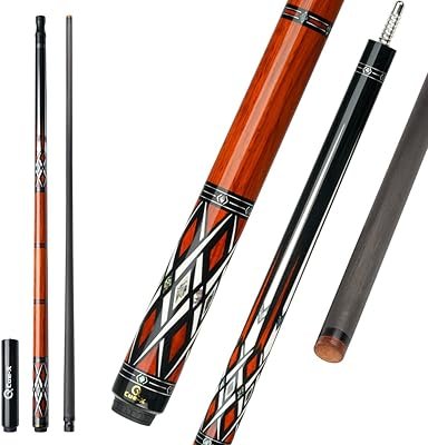 Conta com um acabamento bonito e que pode ser personalizado, ponteiras de primeira e roscas de metal. Boa estabilidade que facilita sua vida. Esse taco de sinuca é de fibra de carbono preto tem uma junta de taco de 3/8 x 8, conexão sem costura.
