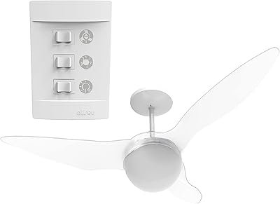 O modelo é controlado através de controle de parede com as funções de ligar ou desligar a luz, ventilação e exaustão com três velocidades. É possível também adquirir um controle à parte para dar comandos remotos ao ventilador de teto. Uma ótima vantagem deste modelo é que ele possui um baixo consumo de energia, além de contar com o selo de segurança Inmetro.
