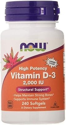 Vitamina de Alta Potência D-3 2000 IU 240 cápsulas – Now Foods