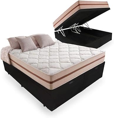 Fora que a camada de espuma localizada na parte superior do colchão, sobre o molejo é confeccionada com o material Pillow Top. O destaque, no entanto, é o sistema de baú, amplo e discreto, que ajuda a manter o quarto livre da bagunça. Com um simples movimento, é possível levantar a base e ter acesso a um espaço interno generoso.
