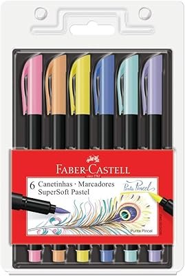 Caneta Ponta Pincel, Faber-Castell, Supersoft Brush, 6 Cores Pastel