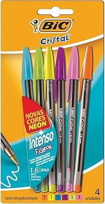 Caneta Esferográfica BIC Cristal Intenso Fashion, 6 Cores Escrita Intensa