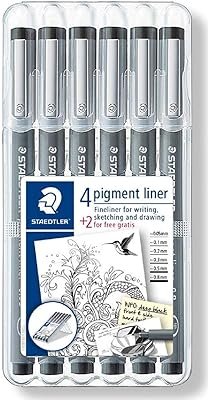 Canetas para Desenho Técnico Artístico, Staedtler, Pigment Liner, 6 Unidades