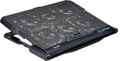 O acessório é compatível com notebooks de 9 a 17 polegadas. Ele possui duas portas USB. O modelo está disponível em dois designs diferentes, você pode escolher entre as opções com ou sem luzes LED embutidas nos ventiladores.