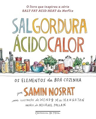Ganhador do prêmio James Beard em 2018 como melhor livro de culinária, o livro Sal, Gordura, Ácido, Calor elaborado por Samin Nosrat inspirou a série Salt Fat Acid Heat da Netflix, e oferece cem receitas base e dezenas de variações de pratos incríveis.