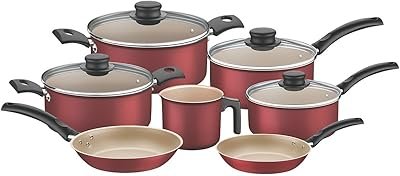 Ideal para quem esta adquirindo as primeiras panelas para a casa nova ou para quem deseja repaginar a sua cozinha. Ele é encontrado na cor vermelha e possui um design moderno e simples. Todas as panelas contam com antiaderência na parte interna e externa facilitando a sua limpeza.