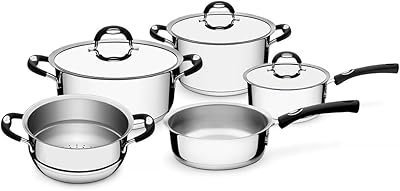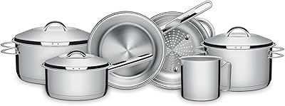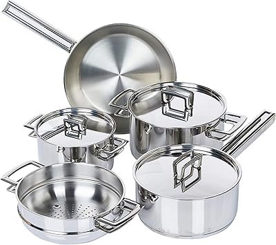 Esse conjunto de panelas de aço inox foi inspirado nas panelas utilizadas em cozinhas profissionais, mas são feitas para o dia a dia. Elas são conhecidas como as melhores para serem utilizadas em fogões por indução, pois seu design é reto.